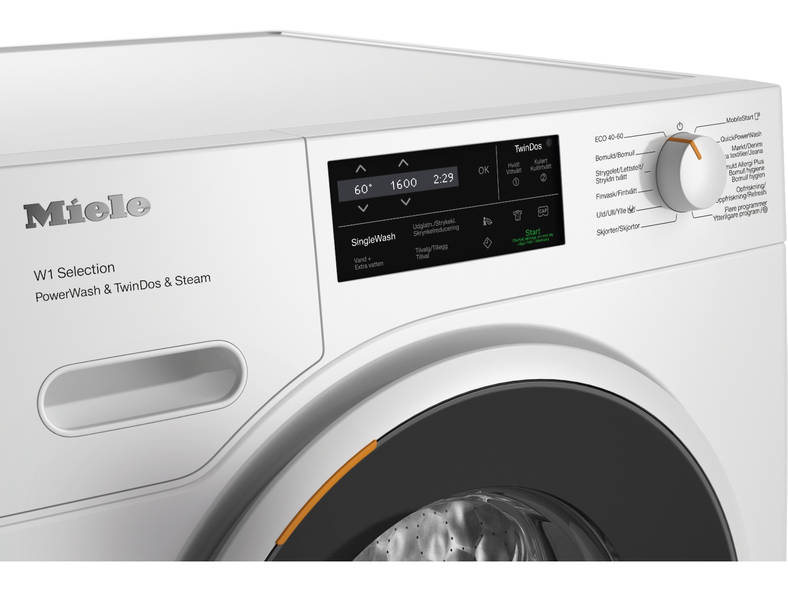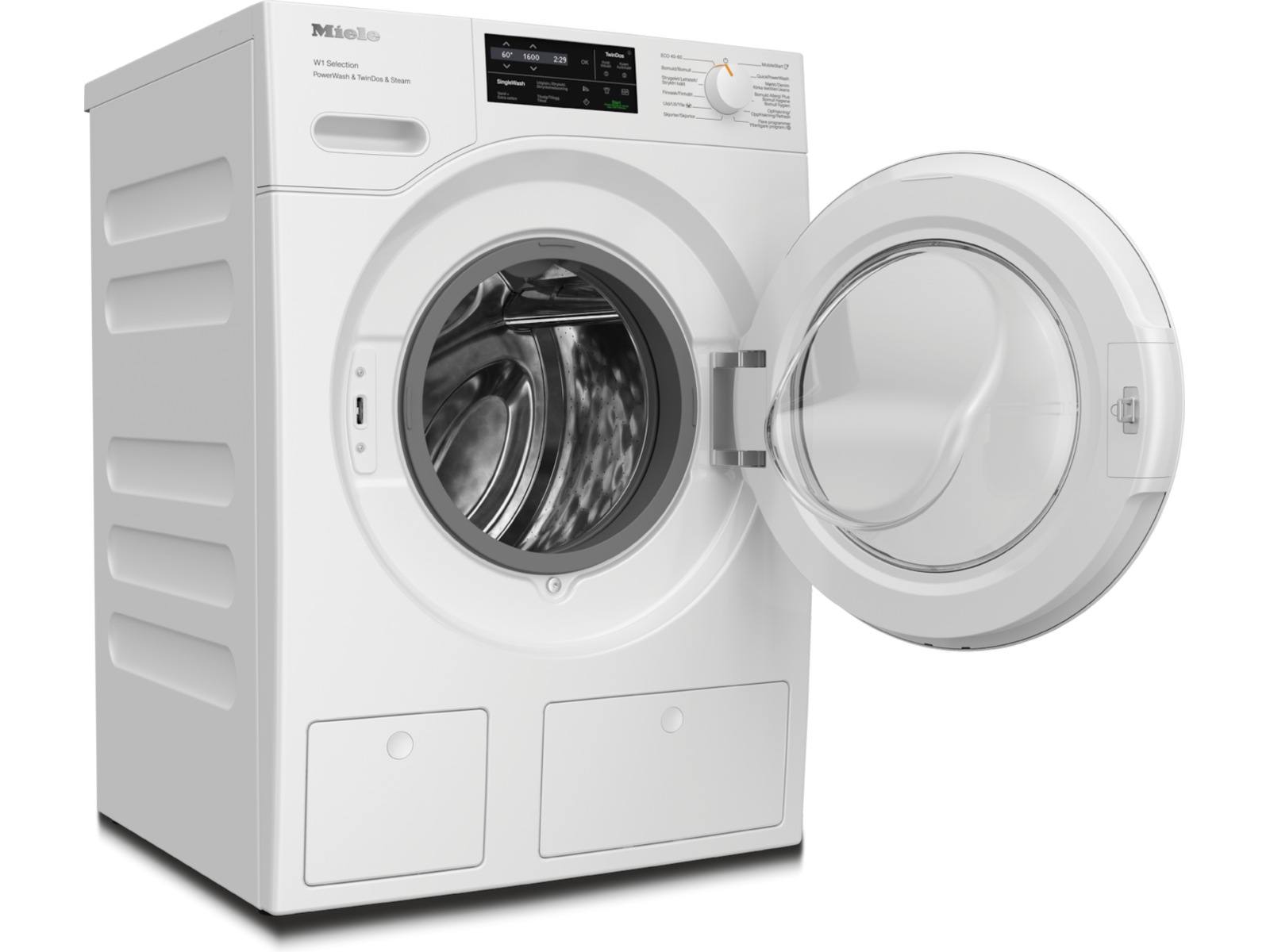 Ekonomisk i alla situationer: Tack vare det perfekta samspelet mellan det automatiska doseringssystemet TwinDos® med den utmärkta rengöringseffekten hos PowerWash kan du tvätta med maximal effektivitet. Även enstaka plagg kan tvättas ekonomiskt – tack vare det praktiska tillägget SingleWash. På så sätt sparar du upp till 40 % tvättmedel* vid varje användning, samt upp till 60 % energi och tid.