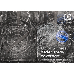 Diskresultatet blir glänsande med SatelliteClean® – det presterar upp till 3 gånger bättre än en standard diskmaskin. Tack vare den dubbelroterande armen som kontinuerligt ändrar vinkeln på sprayen, blir även stora föremål grundligt rengjorda.
