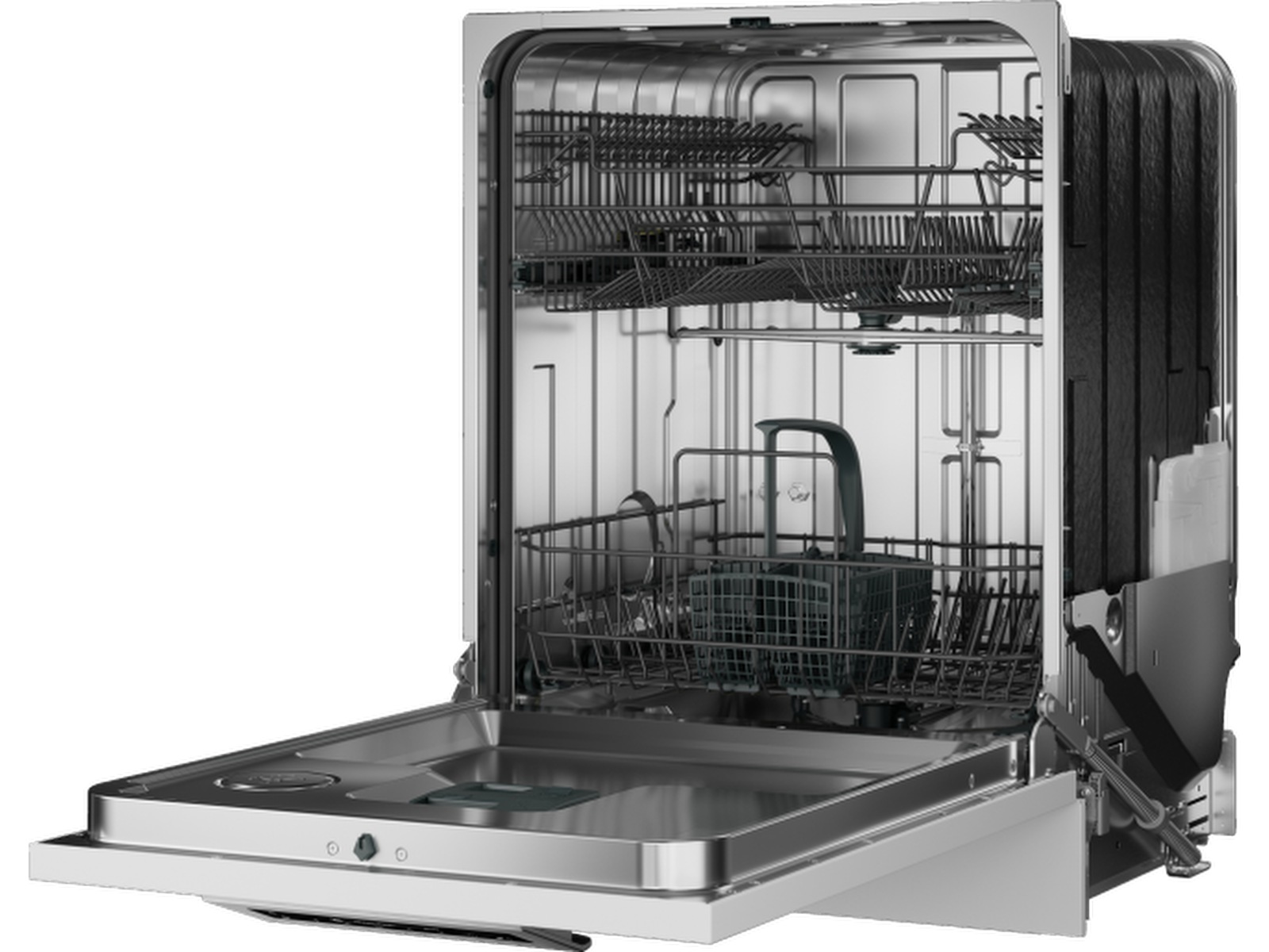 ASKO DW60.C diskmaskinens korgar är utformade för flexibilitet och enkelhet. De övre hyllorna har ett tätt nät för att förhindra att föremål faller, med vikbara hyllor för vinglas som kan justeras till tre positioner. Instant Lift™-spakarna gör höjdjusteringar enkla, medan en knivhållare säkerställer säker placering av knivar. Den nedre korgen har också tätt nät, vikbara bakre radstift för varierande tallriksstorlekar och ergonomiska spakar för att justera stiftvinklar. Åtta hjul ger smidig lastning och lossning.
