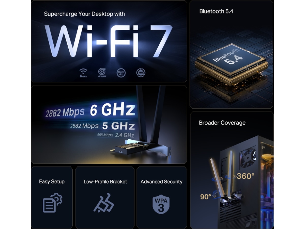 BE6500 Wi-Fi 7 Bluetooth 5.4 PCIe Adapter