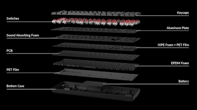 K8 Version 2 förbättrade skrivupplevelsen med flera lager av akustikskum, såsom IXPE, PET och EPDM, vilket säkerställer en överlägsen ljud- och skrivupplevelse.