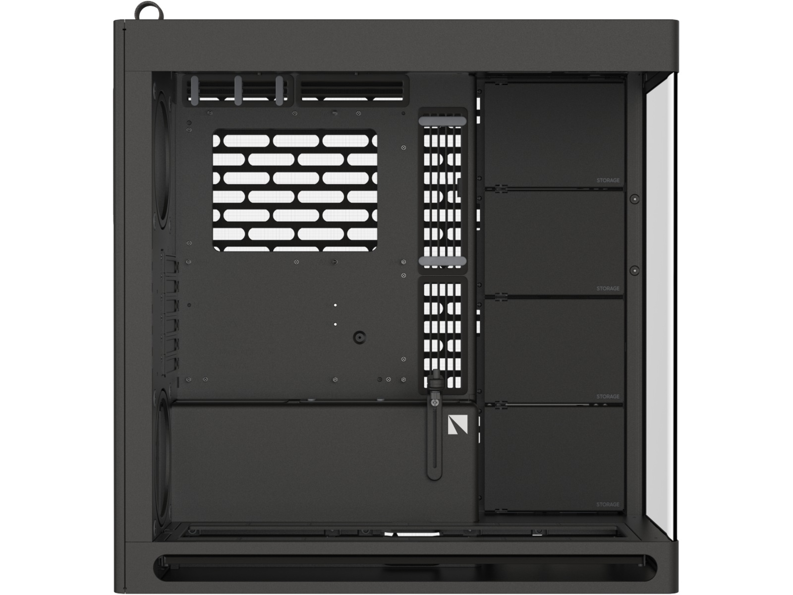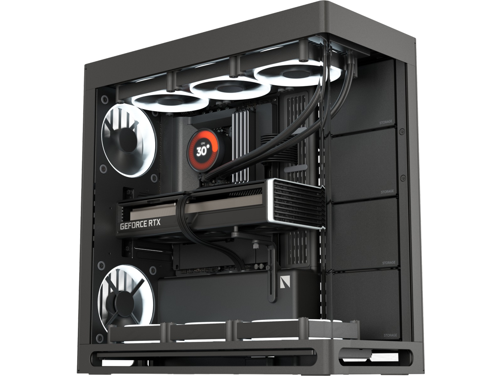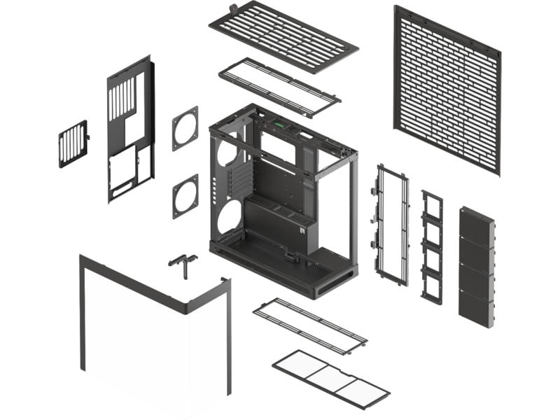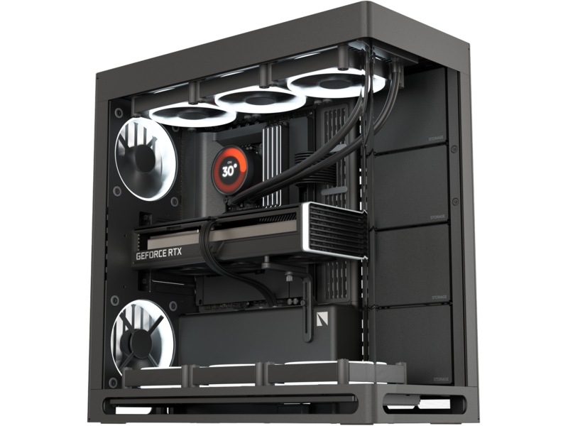 Ovansidan: 120/140 mm fläktmontering x 3, Nedre del: 120/140 mm fläktmontering x 3, Höger sida: 120/140 mm fläktmontering x 3, Bakre: 120/140 mm fläktmontering x 2