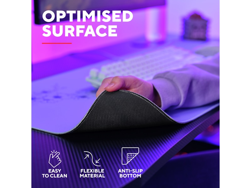 Cool och praktisk, denna musematta kommer med sydda kanter för en touch av klass och extra hållbarhet utan att fransa. Den har också en optimerad ytstruktur designad för att ge optimal noggrannhet och smidig kontroll och se till att inget stör din nästa vinst.