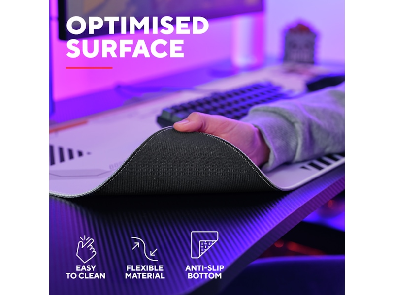 Cool och praktisk, denna musematta kommer med sydda kanter för en touch av klass och extra hållbarhet utan att fransa. Den har också en optimerad ytstruktur designad för att ge optimal noggrannhet och smidig kontroll och se till att inget stör din nästa vinst.