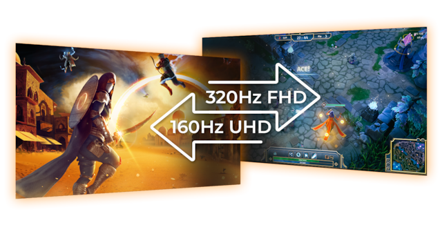 Möt U27G4X Dual-Frame Monitor, med möjligheten att växla mellan UHD@160Hz och FHD@320Hz-upplösningar och uppdateringsfrekvenser för ultimat mångsidighet i spel och innehållsskapande. Med en snabb IPS-panel, 1 ms GtG och 0,5 ms MPRT, njut av ultralyhörd prestanda och livfulla bilder. HDR400 och AdaptiveSync (G-Sync TBC) säkerställer jämn, rivfri action, medan HDMI 2.1 ger överlägsen anslutning. Den ergonomiska eSports-basdesignen erbjuder komfort under långa sessioner, vilket gör U27G4X perfekt för sömlös multitasking och uppslukande spel.