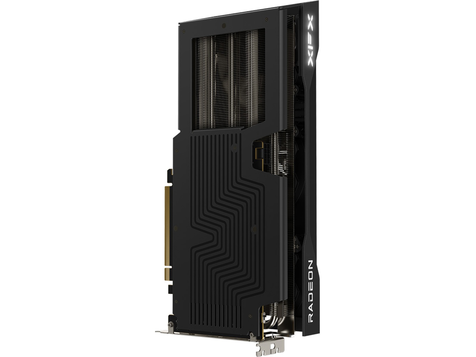 Med varje iteration av XFX Swift-klassen försöker vi förenkla designen samtidigt som vi förbättrar den termiska prestandan. Vår nickelpläterade kopparkylplatta, högpresterande fläktar och 6 mm värmerör samverkar för att ge en stor kylareffekt och termisk avledning.