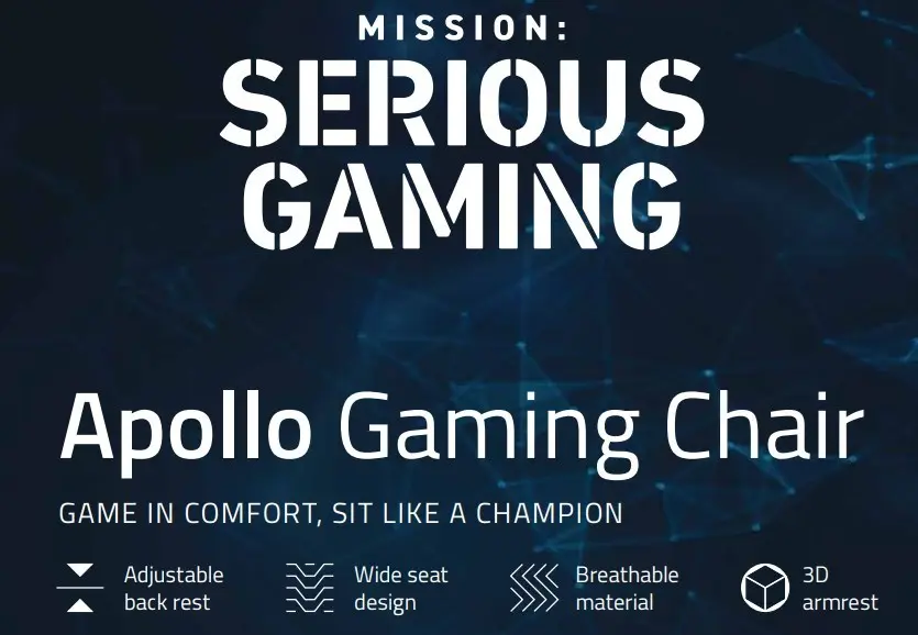 Inkluderar: Apollo gamingstol, monteringsdelar och användarmanual