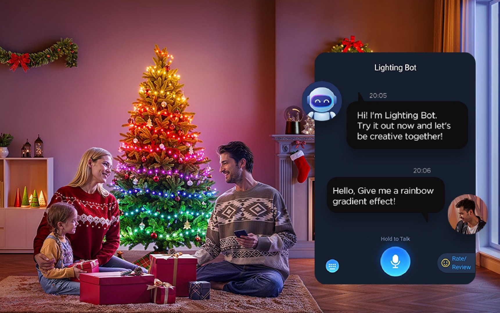 Designa anpassade ljuseffekter på några sekunder med hjälp av röst-, text- eller bildkommandon. Ändra och förfina enkelt dina skapelser för att ge liv åt din fantasi.
