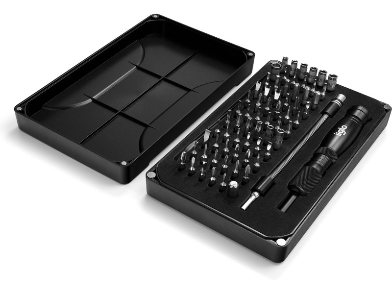 2 magnetmattor, 3 ESD-säkra pincetter, 69-i-1 skruvmejselkit, Dubbelsidigt öppningsverktyg av plast, Kniv, 6 öppningslägen, Rengöringsduk, Antistatisk handledsrem, 3 öppningsverktyg av metall, 3 SIM-kortsskal, Magnetiserare/avmagnetiserare, Skrapa, 2 öppningsverktyg av plast, 4 triangelplektrum, LCD-sugkopp, Utmatningsverktyg för SIM-kort