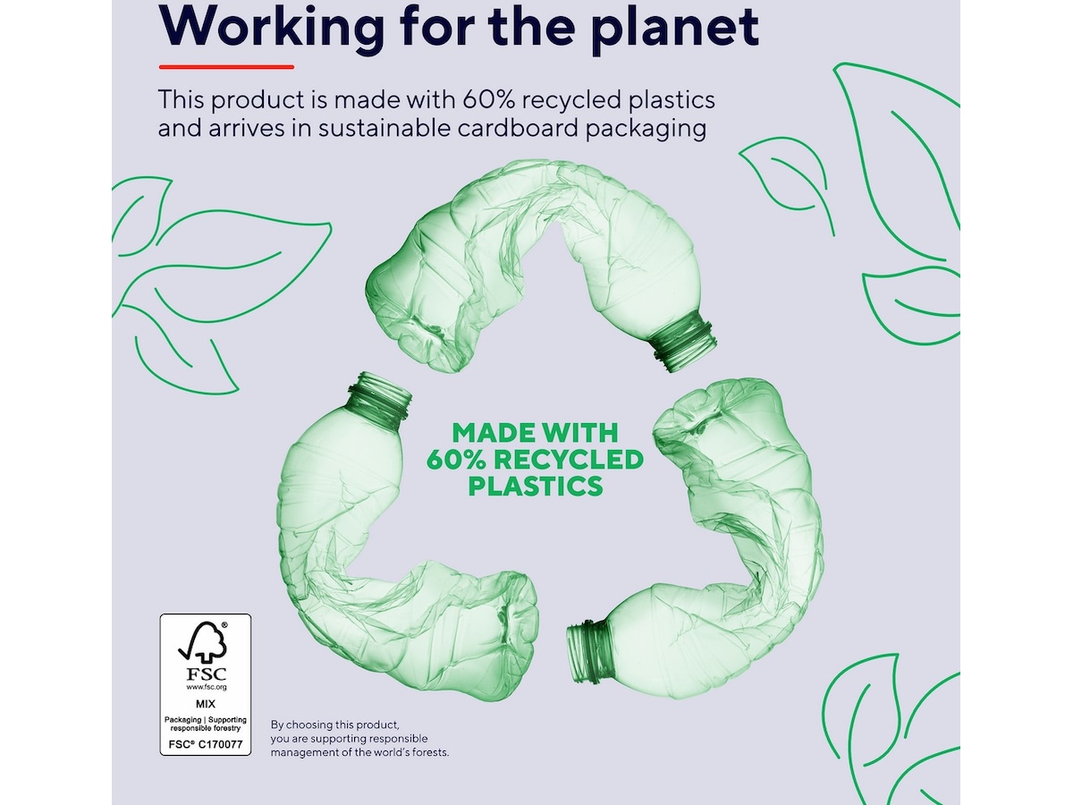 Återvunnet produktinnehåll (kommentar) Tillverkad av återvunnen ABS-plast
