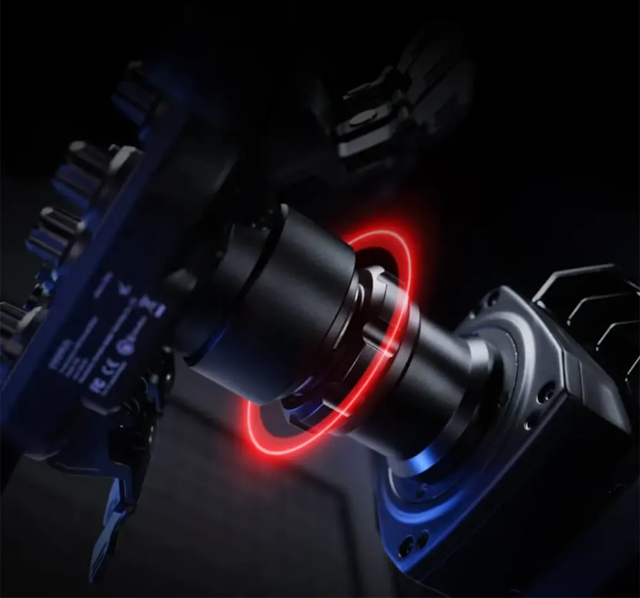 MOZA:s egenutvecklade aluminium snabbkoppling säkerställer säkra, verktygsfria hjulbyten över alla MOZA hjulbaser - snabbt, stabilt och pålitligt varje gång.