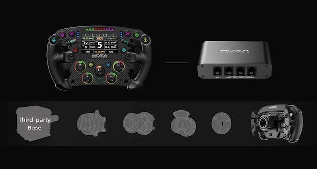 FSR2 stöder alla MOZA-baser och ansluter till tredjepartsbaser via MOZA-hubben. Enkelhet möter flexibilitet för varje installation.