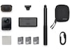 Inkluderade tillbehör Linsskydd, 2 extra batterier, USB-C-kabel (0.5 m), Rengöringsduk, Selfiepinne, Laddningsfordral, Skyddspåse, Monteringsadapter