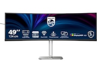 Den 32:9 SuperWide 49" skärmen med 5120 x 1440-upplösning är konstruerad för att ersätta flera skärmar och erbjuder ett expansivt bredbildsformat. Den motsvarar två 27" 16:9 Quad HD-skärmar sida vid sida, vilket ger skärmyta som två displayer utan komplexiteten i en dubbelskärmslösning.