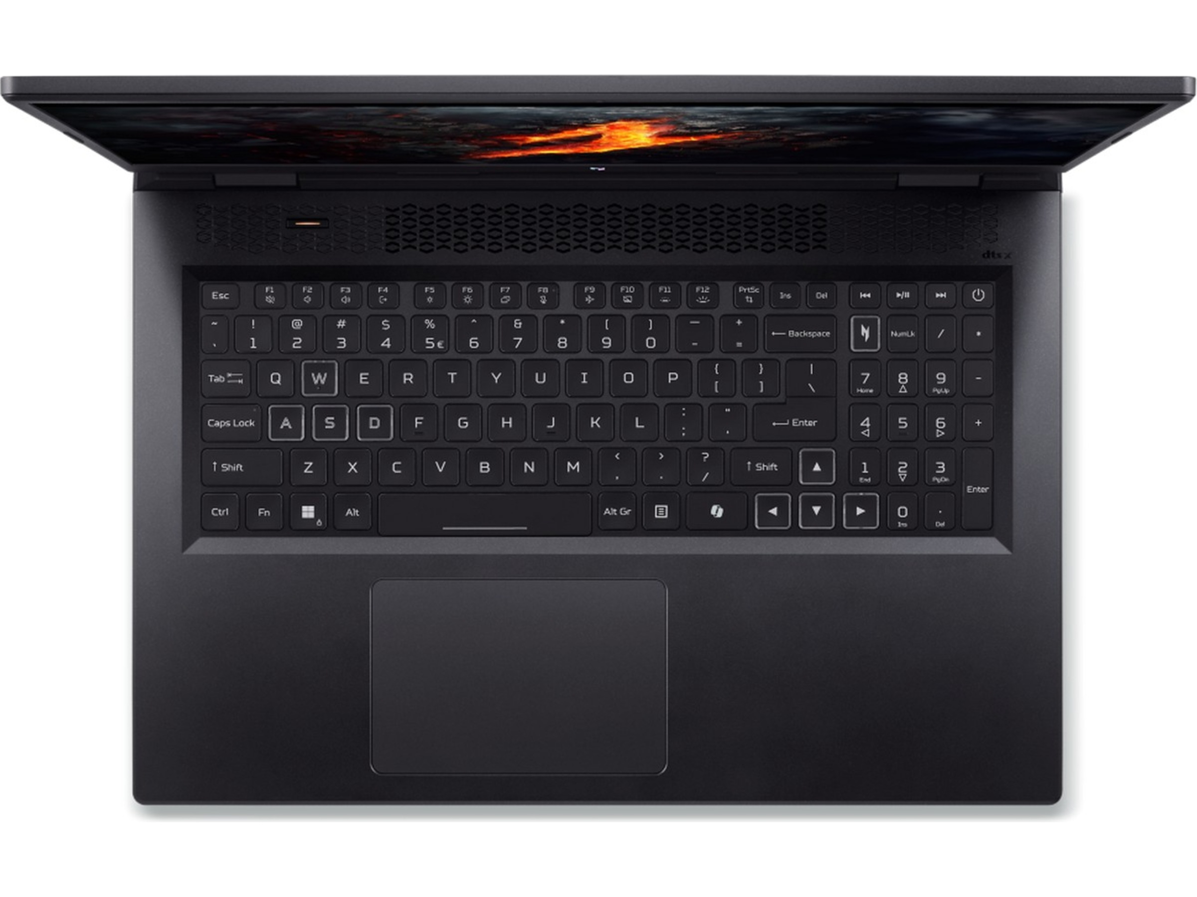 1.6 mm reseavstånd, Nitro Sense-knapp, Knapp för andrepilot, RGB-bakgrundsbelysning med 4 zoner