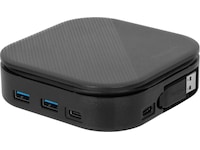 En kompakt och lätt design gör denna docka idealisk för resor och den får enkelt plats i ryggsäckens ficka. Den fastsittande, infällbara kabelhanteringen håller sladdarna i ordning. För maximal flexibilitet drivs den via värdbussen eller så kan du ansluta en USB-C®-strömadapter till dockan (strömadapter ingår ej) för att ladda värdenheten. Perfekt för laptops med endast en USB-C-port.