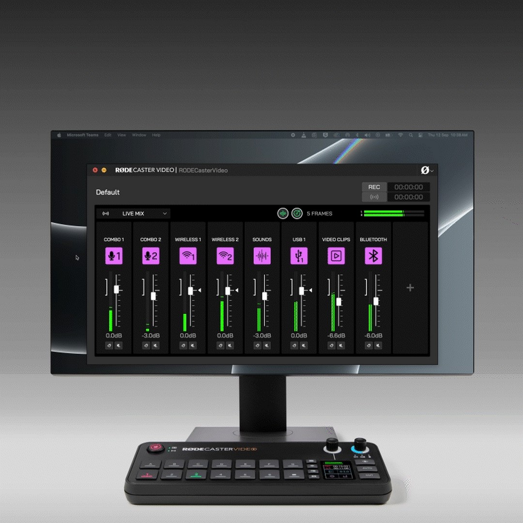 RØDECaster Video är en avancerad allt-i-ett video- och ljudproduktionskonsol utformad för att ge exakt och intuitiv kontroll över varje aspekt av ditt innehåll. Med robust videoväxling, inspelning och produktionsfunktioner integrerade med en professionell ljudmixer, effektiviserar den ditt arbetsflöde för studioproduktioner, videopoddar, intervjuer och livesändningar med pålitlig prestanda i sändningskvalitet.