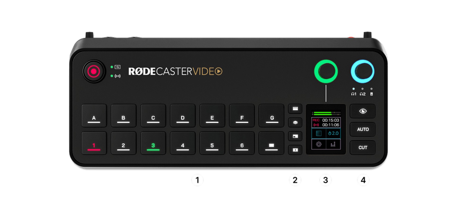 RØDECaster Video introducerar ett intuitivt scenbaserat växlingssystem som förenklar anpassning och konfiguration av komplexa videouppsättningar och möjliggör växling mellan scener med ett enda tryck.