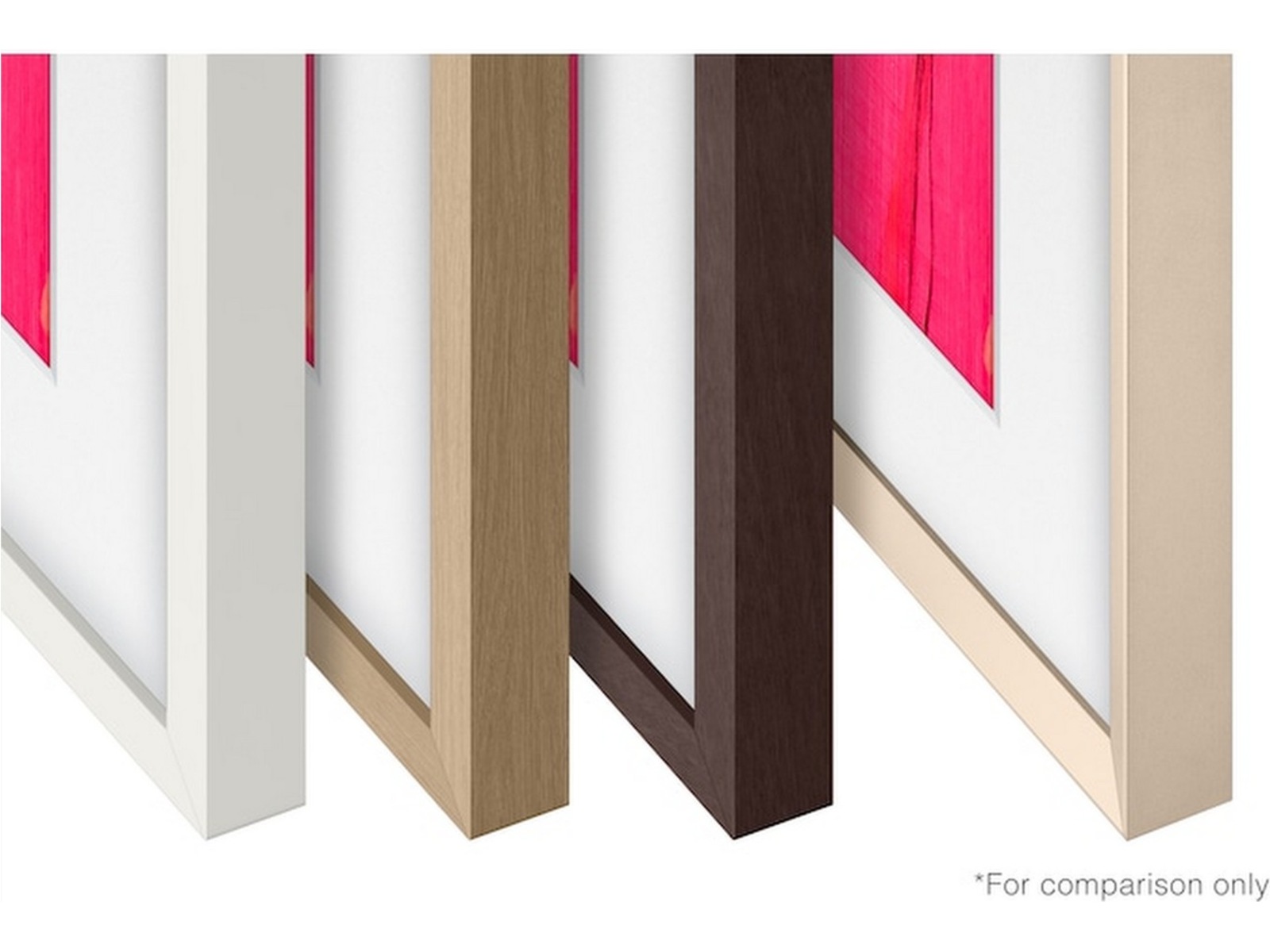 Ge The Frame Pro en personlig touch med justerbara kantramar. Välj den färg som bäst harmoniserar med ditt rum eller din konst bland de tillgängliga alternativen, och fäst den enkelt med den slanka magnetiska kanten på TV:ns sidor.