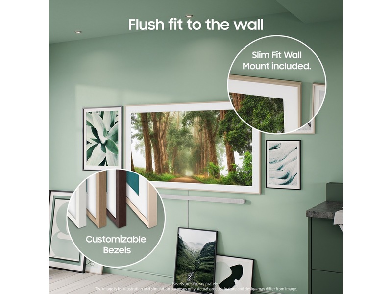 Med sin slanka profil kan The Frame Pro monteras nästan helt intill väggen, så att den framstår som en autentisk målning.