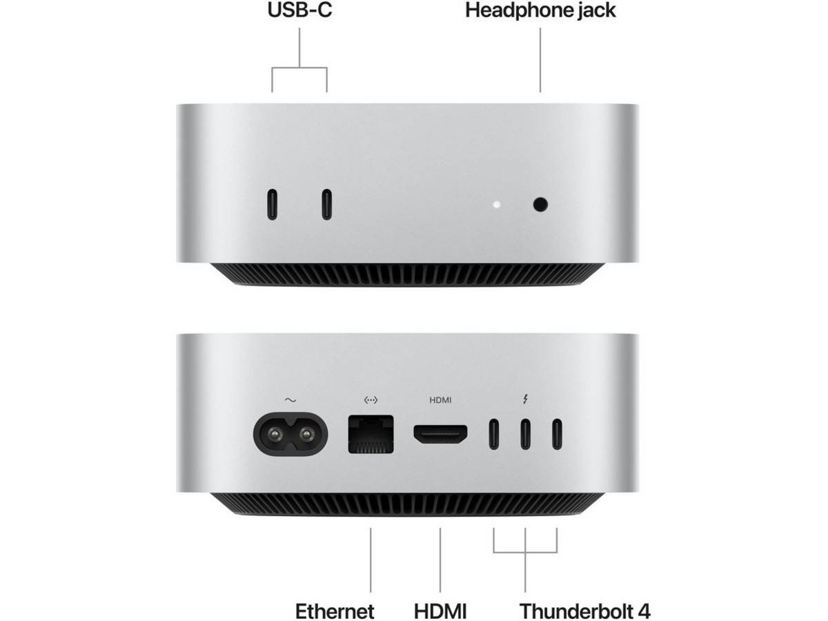 Den betydligt mäktigare och avsevärt mycket mindre Mac mini är fem gånger fem tum av ren kraft. En ny design som bygger på Apple Silicon frigör den fulla hastigheten och kapaciteten i M4-chippet. Med portar där du behöver dem, på både fram- och baksidan.