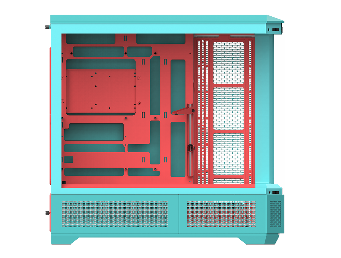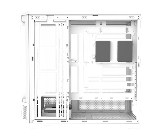 Trots sitt rymliga inre bibehåller View 600 TG Full Tower Chassi effektiv termisk hantering genom strategiskt utformade kalla luftintag och varmluftsutblås, vilket säkerställer optimala interna temperaturer under drift.