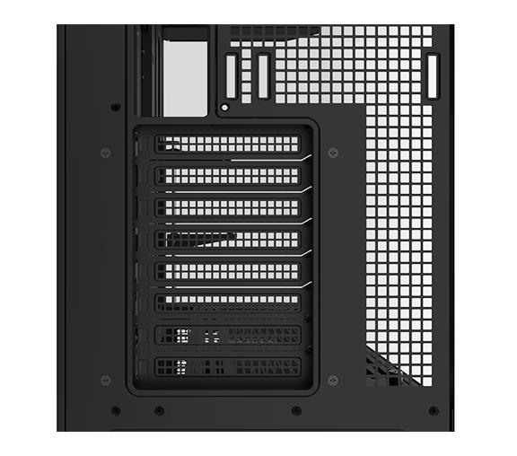 Chassit har roterbara PCI-E-platser som, tillsammans med en valfri riserkabel (säljs separat), stödjer både horisontell och vertikal montering av grafikkort.