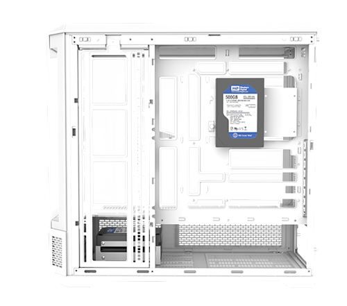 Den integrerade hårddiskplattan och buren ger flexibla lagringsalternativ och rymmer upp till tre 3,5" HDD:er och en 2,5" SSD, eller alternativt en 3,5" HDD och tre 2,5" SSD:er.