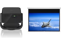 Den här kompakta projektorn levereras i metallisk svart, och med det justerbara inbyggda stativet kan bilder projiceras i alla riktningar – på vägg, tak eller golv. Den användarvänliga utformningen, installationen och portabiliteten innebär att du kan njuta av underhållning även när du är på språng.