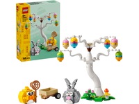 Byggsetet är en rolig påskpresent till vuxna, barn och djurälskare och ett perfekt set för familj eller vänner att bygga tillsammans. Sätt ihop trädet, vagnen, LEGO-fågeln och kaninen. Bygg och fäst de färgglada äggen på trädgrenarna så att djuren kan hitta dem. Hjälp kycklingen och påskharen att samla äggen med hjälp av nätet och förvara dem i vagnen.