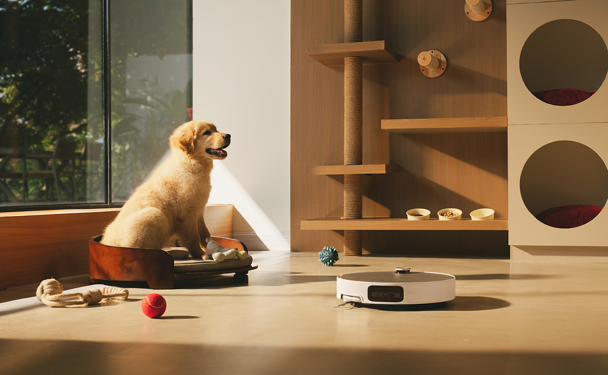 Roboten känner automatiskt igen husdjur och stoppar huvudborsten för att inte skrämma dem. Den kan också ta bilder, visa deras position på kartan och möjliggöra videosamtal i realtid, så att du alltid har koll på både hemmet och dina fyrbenta vänner.