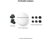All lyssningstid är ungefärlig och har mätts med musikuppspelning på maskinvara och programvara i förproduktionsstadiet, med fulladdade Pixel Buds 2a och fodral samt aktiv brusreducering påslagen men övriga funktioner avstängda. Fodralet används för att ladda Pixel Buds 2a. Användning av andra funktioner minskar batteritiden. Batteritiden beror på enhet, aktiverade funktioner, användning, miljö och många andra faktorer. Den faktiska batteritiden kan vara kortare.