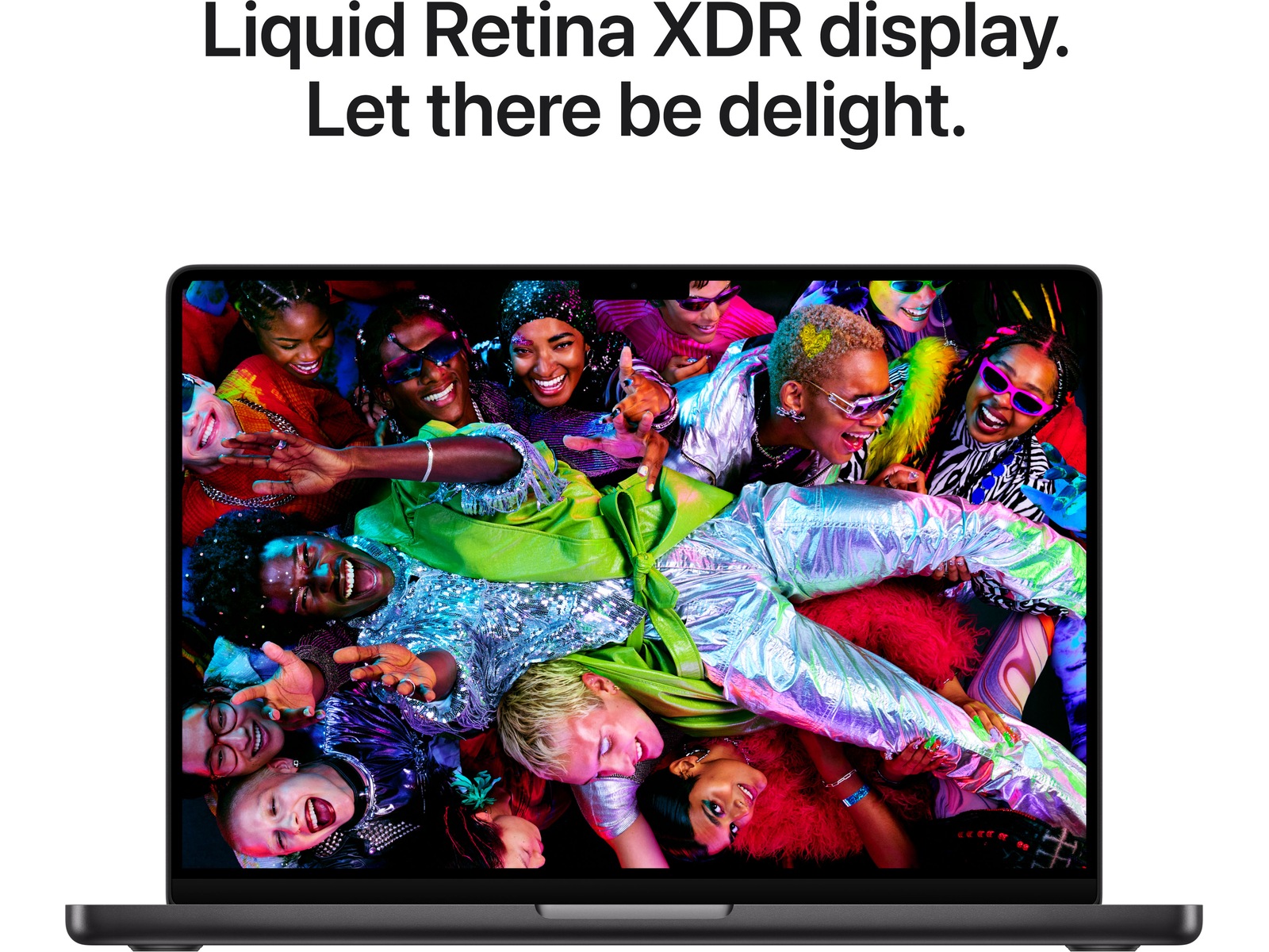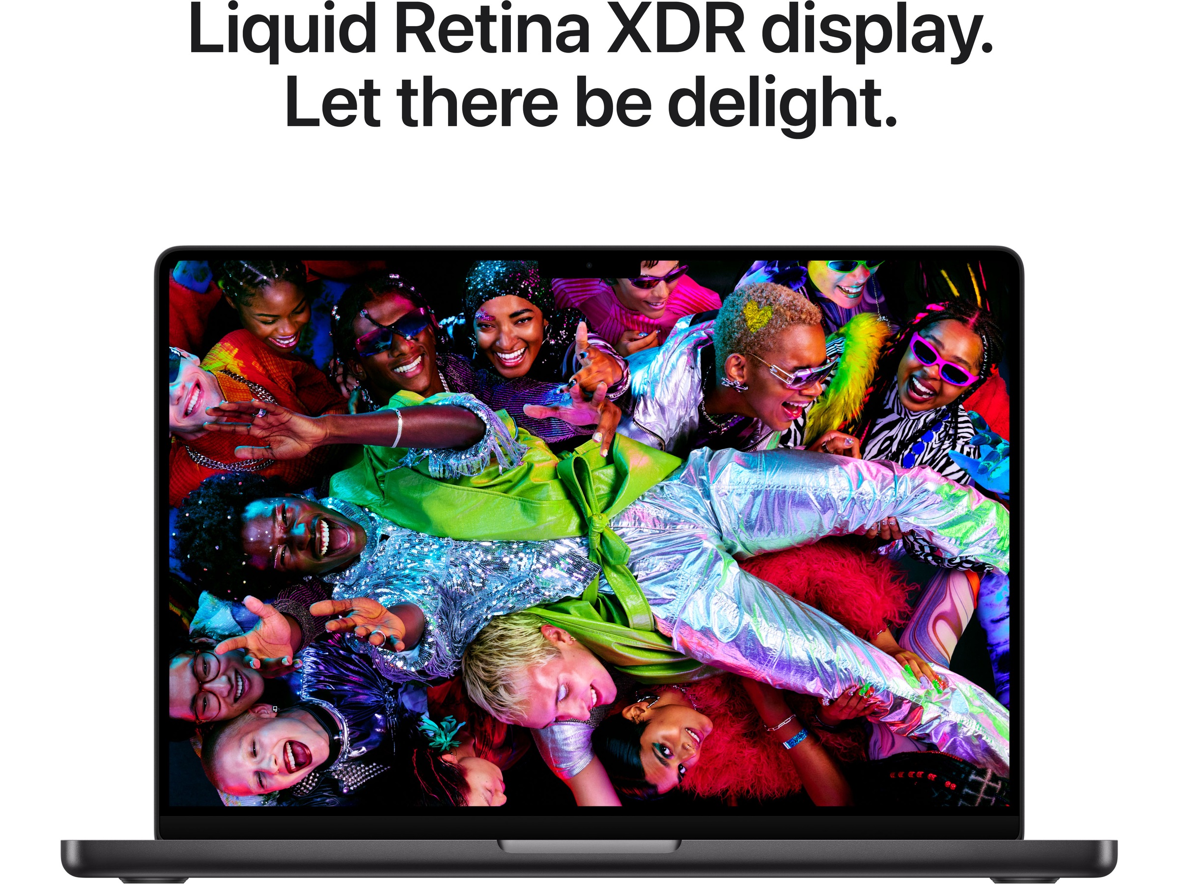 STRÅLANDE PRO-SKÄRM – Den 14,2-tums Liquid Retina XDR-skärmen(6) har maximal ljusstyrka på 1600 nit(7) och varaktig ljusstyrka på upp till 1000 nit samt kontrastförhållande på 1 000 000 : 1.
