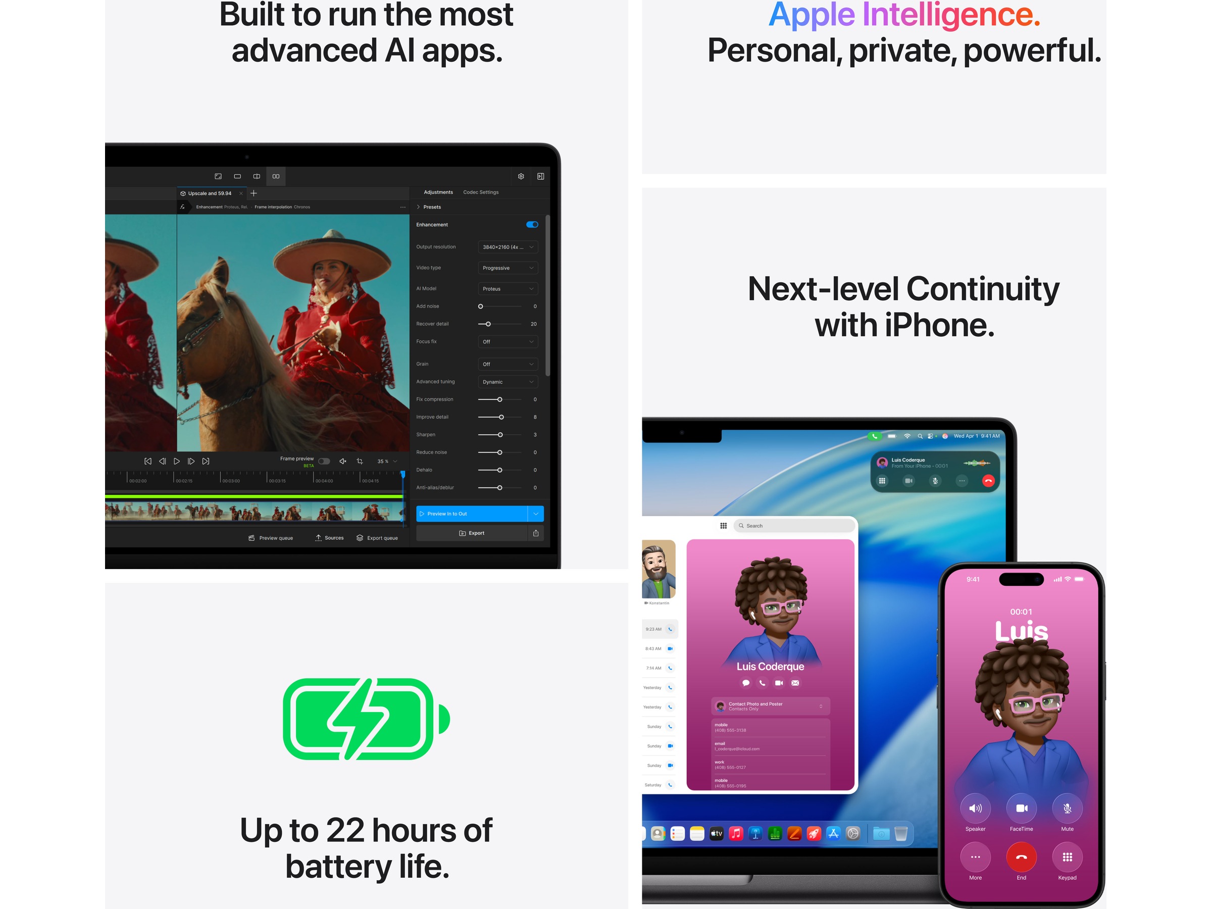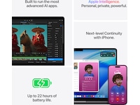 UTVECKLAD FÖR AI – Apple-chipen, och alla viktiga komponenter som driver dem, är designade för att köra krävande AI-uppgifter på enheten, som inferensuppgifter och träning av stora språkmodeller. Och Apple Intelligence hjälper dig att skriva, uttrycka dig och få saker gjorda i en fart, med banbrytande integritet i alla led.(3)