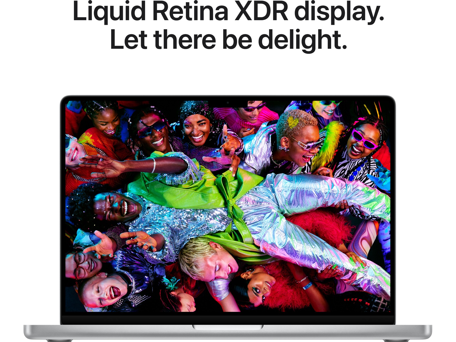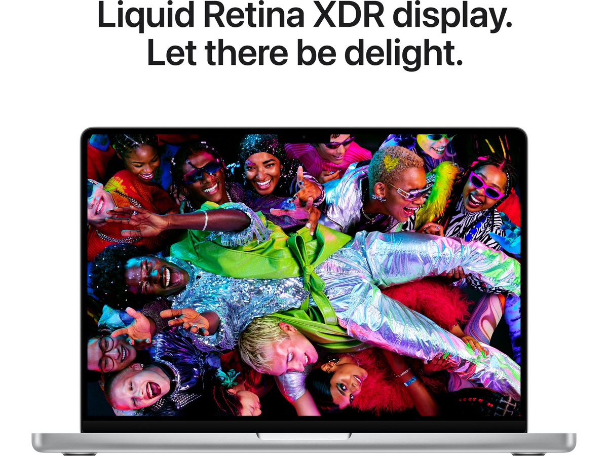 STRÅLANDE PRO-SKÄRM – Den 14,2-tums Liquid Retina XDR-skärmen(6) har maximal ljusstyrka på 1600 nit(7) och varaktig ljusstyrka på upp till 1000 nit samt kontrastförhållande på 1 000 000 : 1.