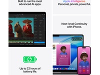 UTVECKLAD FÖR AI – Apple-chipen, och alla viktiga komponenter som driver dem, är designade för att köra krävande AI-uppgifter på enheten, som inferensuppgifter och träning av stora språkmodeller. Och Apple Intelligence hjälper dig att skriva, uttrycka dig och få saker gjorda i en fart, med banbrytande integritet i alla led.(3)