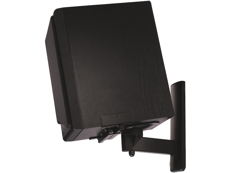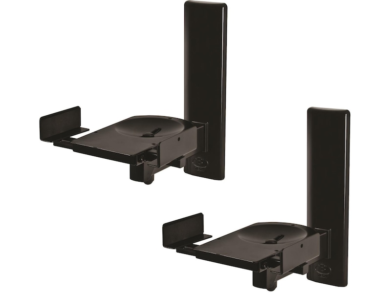 Den kan bära högtalare som väger upp till 25 kg! De justerbara sidoklämmorna har så kallade "Ultragrip"-friktionsdynor som eliminerar behovet av att skruva fast högtalarna på skåpets sidor eller via skruvhål i plattformens undersida. Men det går naturligtvis att göra om du vill dubbelsäkra högtalarna. När högtalaren installeras i offentliga utrymmen eller om lutningsfunktionen används ska den fästas med skruvar. Plattformen kan lutas ± 7° och vridas upp till 180°. Allt monteringsmaterial ingår.