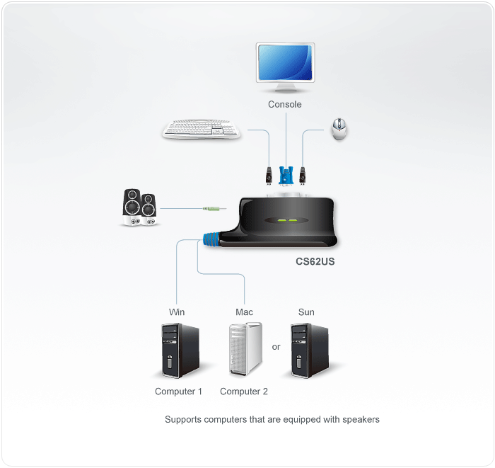 Omkopplare för tangentbord/video/mus/ljud/USB |