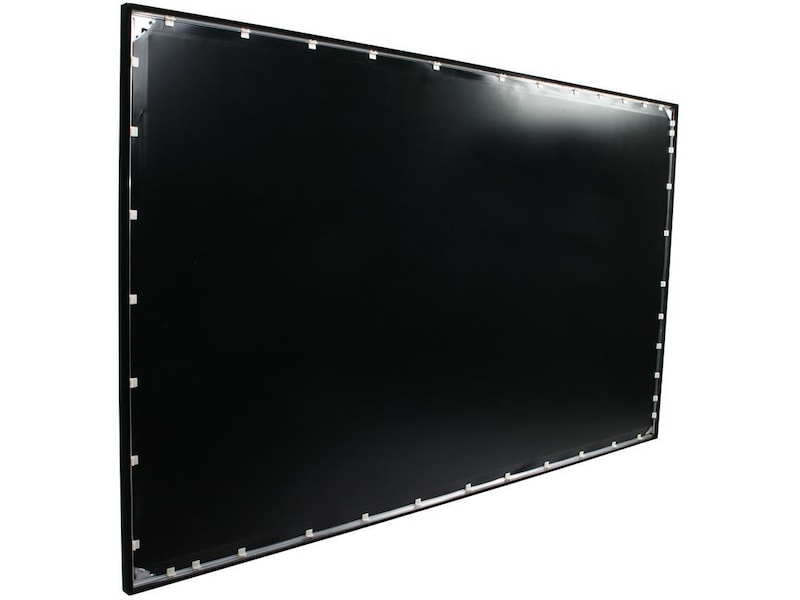 Anodiserad svart aluminiumram med svart velourbeläggning för att förbättra utseendet med den snygga maskerade kanten som absorberar projektorljuset.