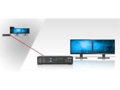 The Matrox Avio F120 KVM extension solution delivers dual-display workstation performance ideally suited for mission-critical environments that require stable, reliable I/O extension technology and where data security, heat, noise and space are prevalent issues. The separation of the user interface devices from the computer offers many advantages such as improved IT system maintenance and life cycle support, climate and noise control for user/operator stations, climate and environmental control for systems, and increased security.