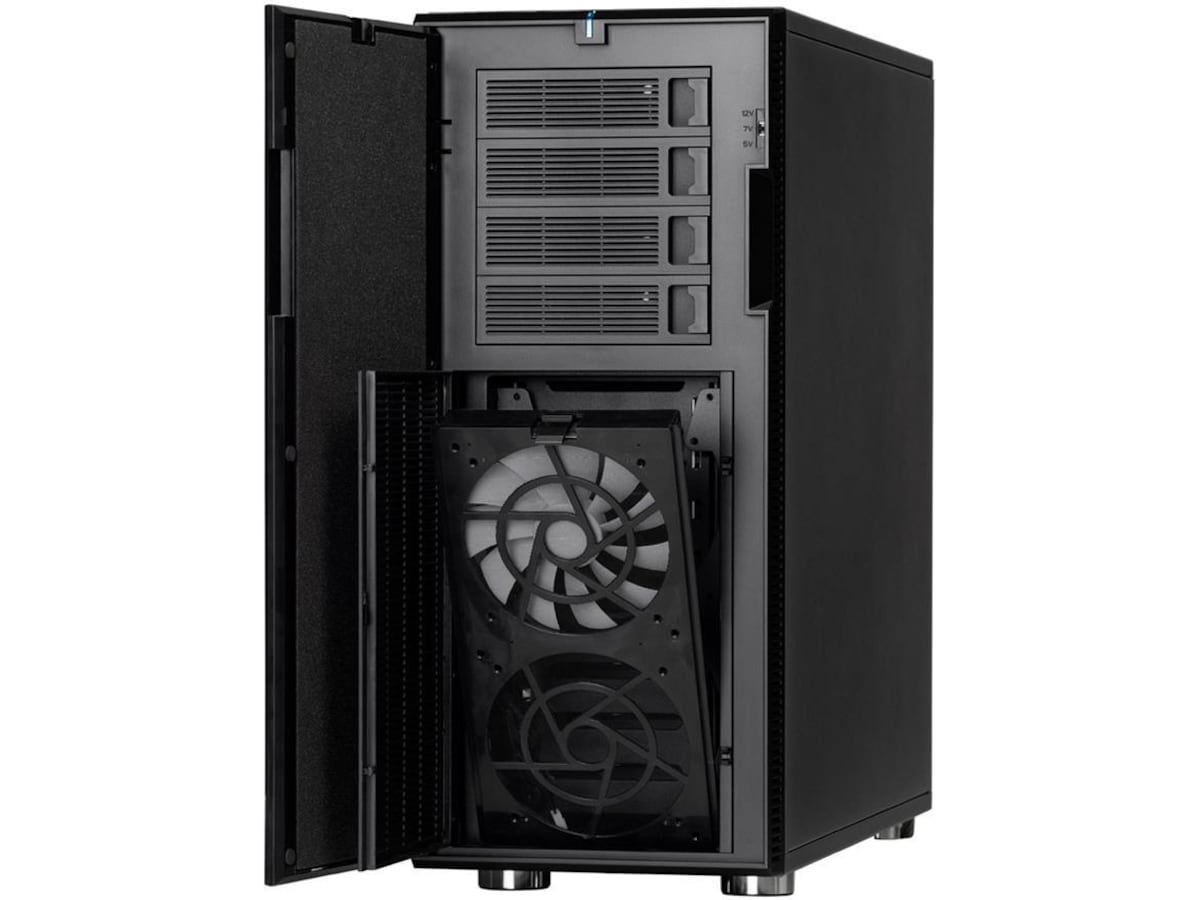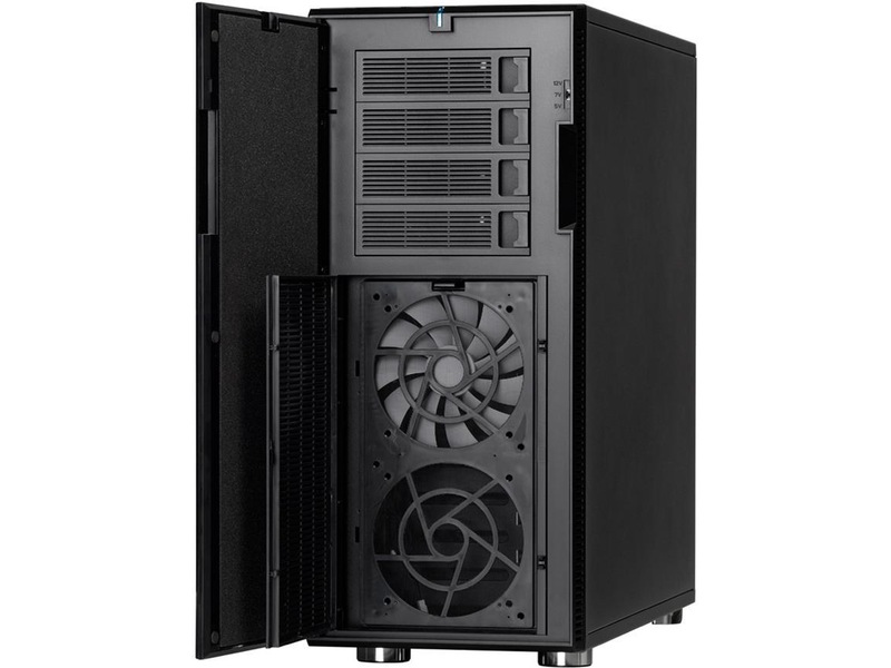 Bakre: 140 mm fläkt x 1 / intag / 1000 rpm / hydraliskt lager, Nedre del: 140 mm fläkt x 1 / intag / 1000 rpm / hydraliskt lager, Ovansidan: 120/140 mm fläktmontering x 2 / intag, Front: 120/140 mm fläktmontering x 1 / intag, Front: 140 mm fläkt x 1 / intag / 1000 rpm / hydraliskt lager, Sida: 140 mm fläktmontering x 1 / intag |