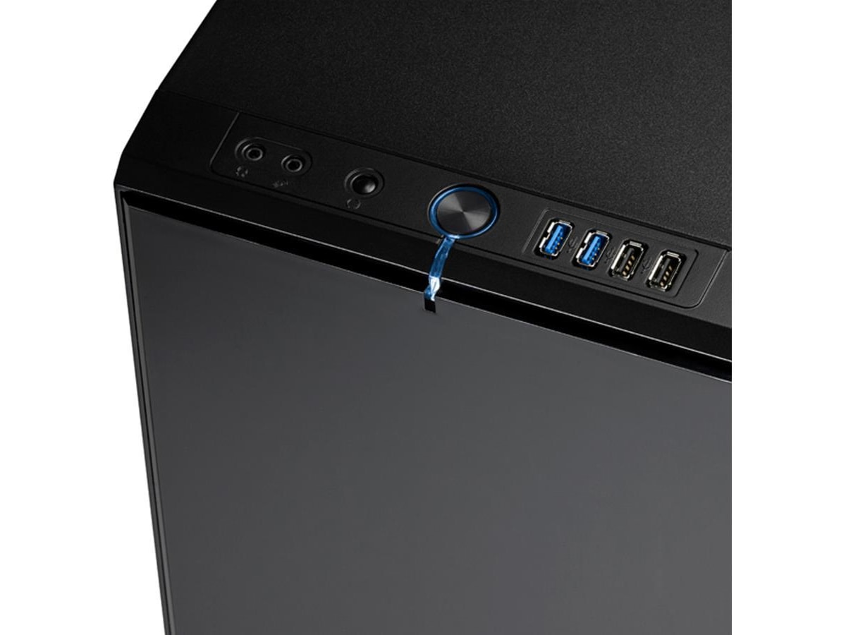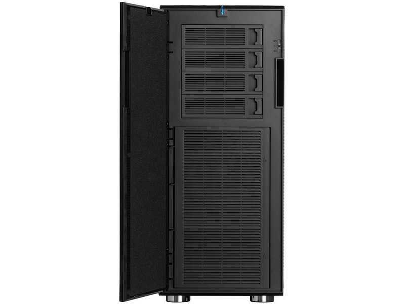 Frontpanelslucka, Fläkthastighetskontroll, Blå lysdiod, Luftfilter, ModuVent, Borttagbart HDD-rack, Vattenkylningshål, Kabelhanteringssystem, Bottenmonterad PSU-hållare |