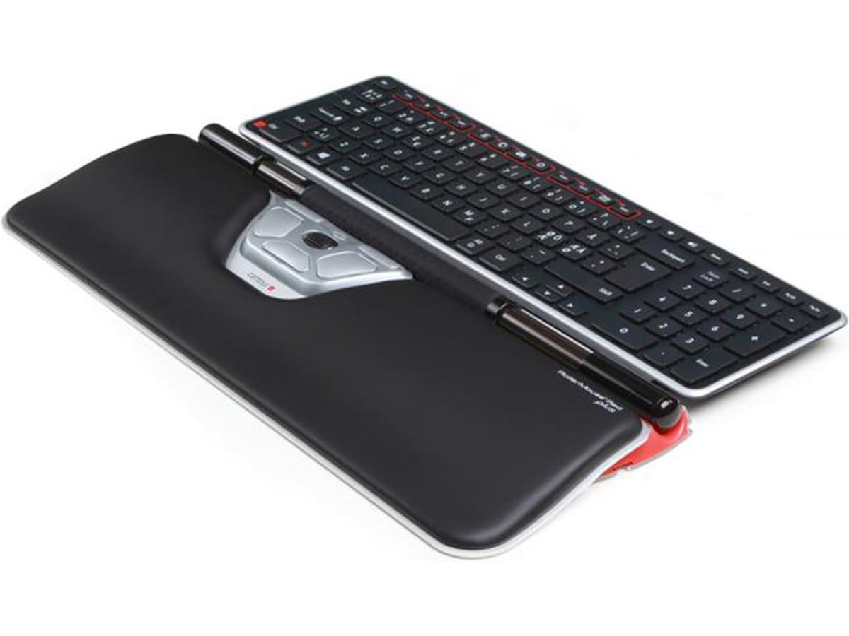 Med RollerMouse Red Plus får du samma förmåner som på RollerMouse Red och dessutan ett extra djupt handledsstöd som ger en längre och smidigare övergång till skrivbordet. Den mjuka inre kärnan följer handens form och ger stöd til både armar och händer genom att fördela trycket över en större yta.