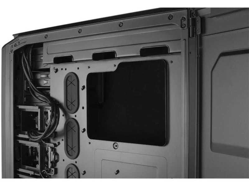 Stöder 240/280/360 mm element högst upp, Modulära HDD-konsoler, Skruvlösa sidopaneler, Stöd för 120/140 mm element bak, Främre dammfilter, Stöder 240/280 mm radiator i frontpanel, Enhetsfack utan skruvar, Stöder 120 mm element längst ner, Kabelhanteringshål, Fläkthastighetskontroll |