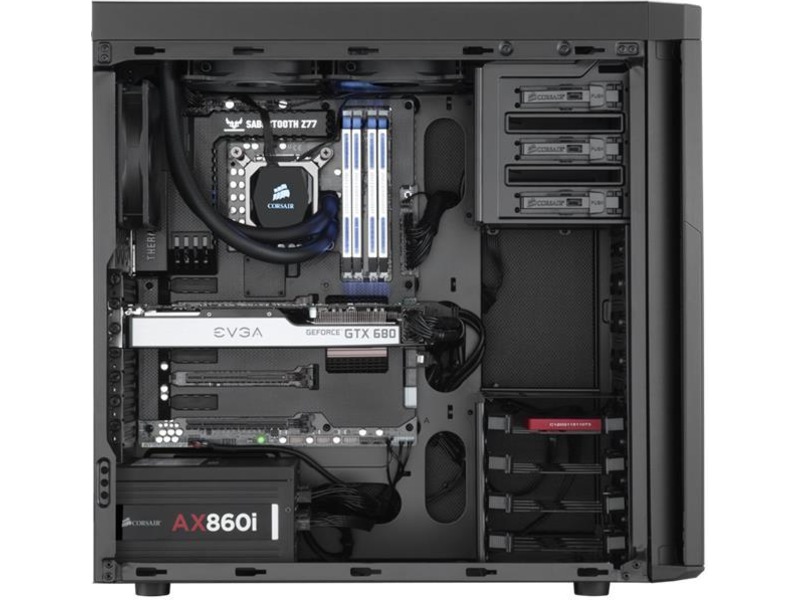 - Flyttbar toppanel, med övre fläktfästen förborrade för 240 mm eller 280 mm radiatorkompatibilitet