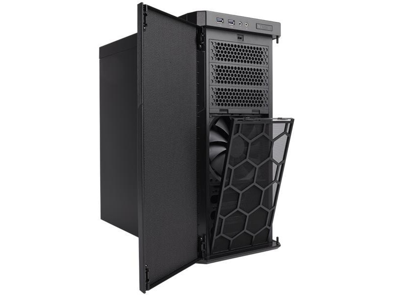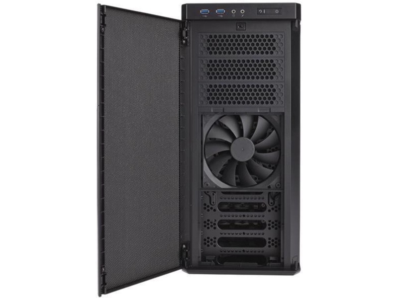 - Direkt luftflöde till komponenter – frontfläkten på 140 mm är obegränsad av hårddiskburarna och har ett lågrestriktions-dammfilter framtill för utmärkt kylning och låg ljudnivå