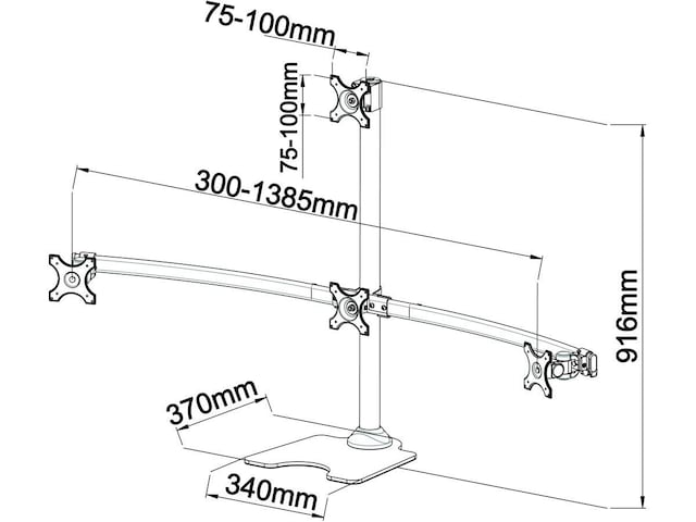 Detta bildskärmsstativ levereras med roterbara 75/100 mm VESA-plattor. Det låter dig ställa in dina skärmar i antingen liggande(horisontellt) eller stående(vertikalt) läge.