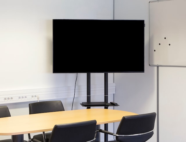 En robust vagn för montering av en plattskärm. Perfekt för kontor eller andra områden som behöver flexibilitet och rörlighet för 30” till 65” TV-skämar.