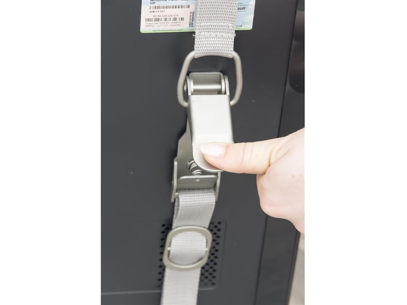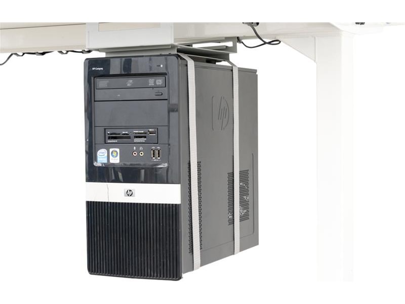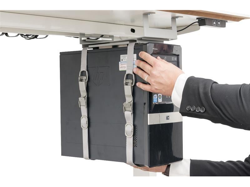 En bra och prisvärd pc-upphängning. Skapar trivsel och ordning genom att den stationära PC:n monteras under bordet. Banden spänns fast hårt med spännmekanismen, som är monterad på varje band. Passar för bord med en sarg på upp till 40 mm.
