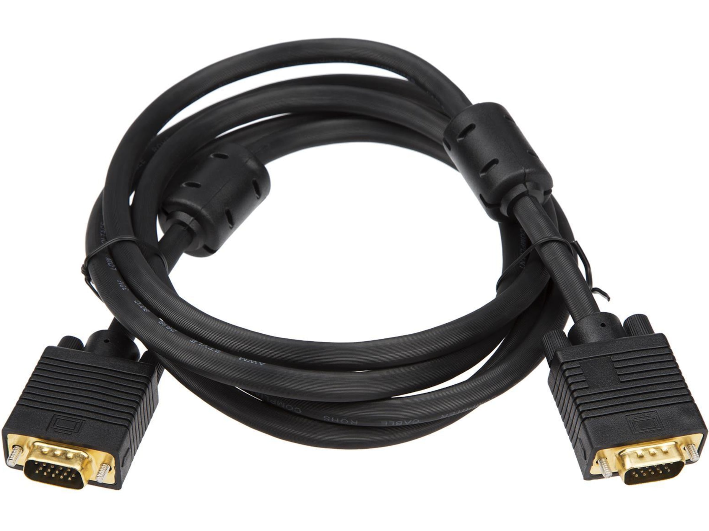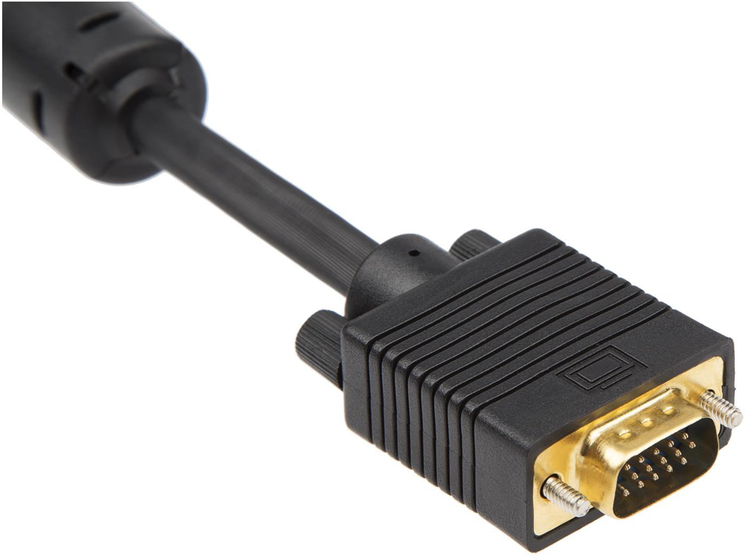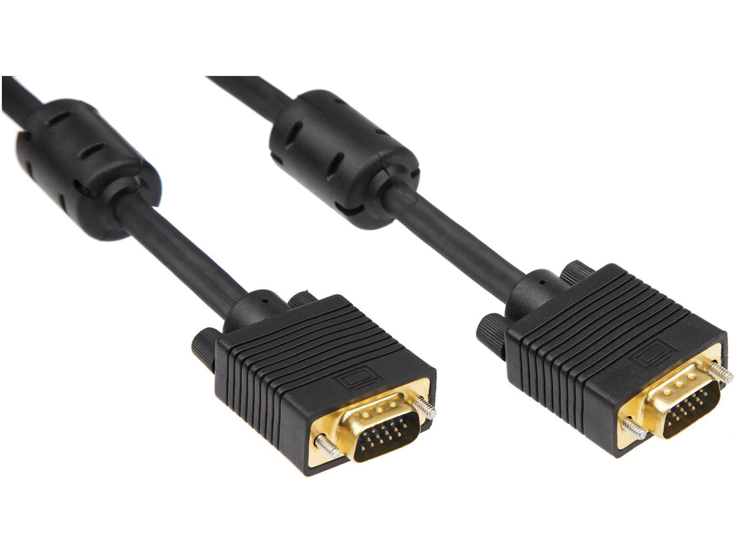 En VGA-kabel används för att sända video från en källa med VGA-port till en display med en VGA-port. Källan är normalt en PC. Displayen kan vara en monitor, projektor, etc. VGA är en gammal standard, men det kommer fortfarande en hel del utrustning med detta gränssnitt. Du kan även skicka HDMI och DisplayPort signaler till displayen med en VGA-kontakt, Observera att det inte skickas ljudsignaler.